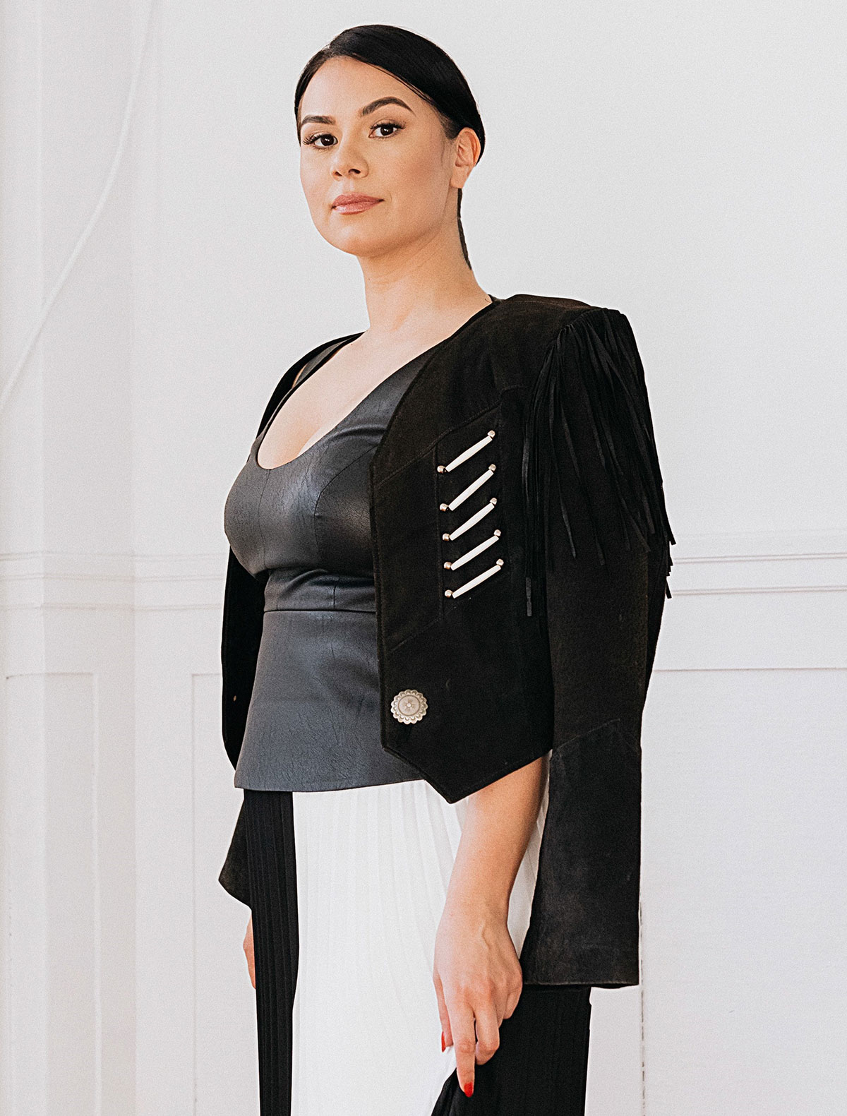 Since 2016, Matthew has shared his work through exhibitions and runways, including Vancouver Indigenous Fashion Week and a collective showcase with 4KINSHIP in Santa Fe. Currently serving as one of four Blackfoot Curators with the City of Calgary, he is committed to uplifting Piikani culture and artists, using design as a way to celebrate stories, strength, and creativity that have existed since time immemorial.
