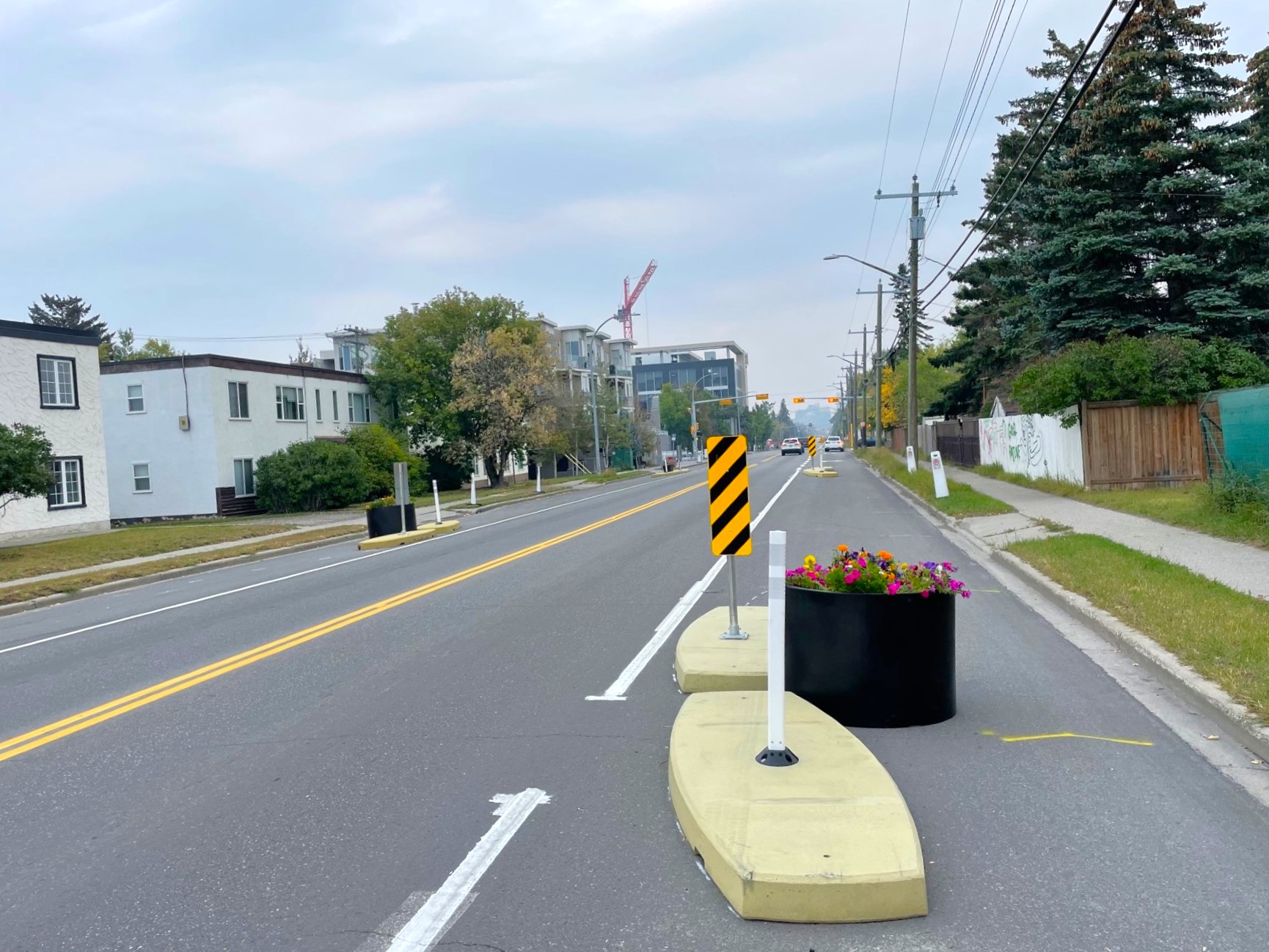In the summer of 2023, temporary measures were put in place to improve safety along Kensington Road. These changes saw Kensington Road reduced to one traffic lane in each direction between 16th Street N.W. and 23rd Street N.W. Temporary traffic calming curbs were used along the corridor to block the curb lane from vehicle use.