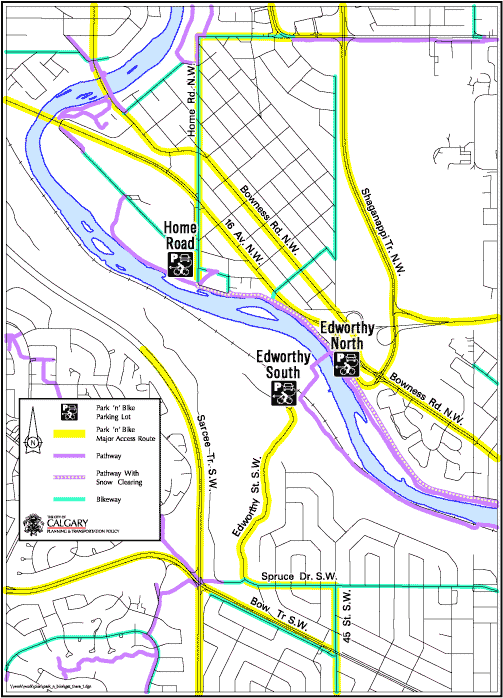 Avoid downtown parking fees, exercise regularly, bypass traffic congestion, and discover Calgary's river pathways and bikeways. Seven Park and Bike sites are located five to eight kilometres from downtown Calgary. They feature direct access from major roads and great connections to river pathways.