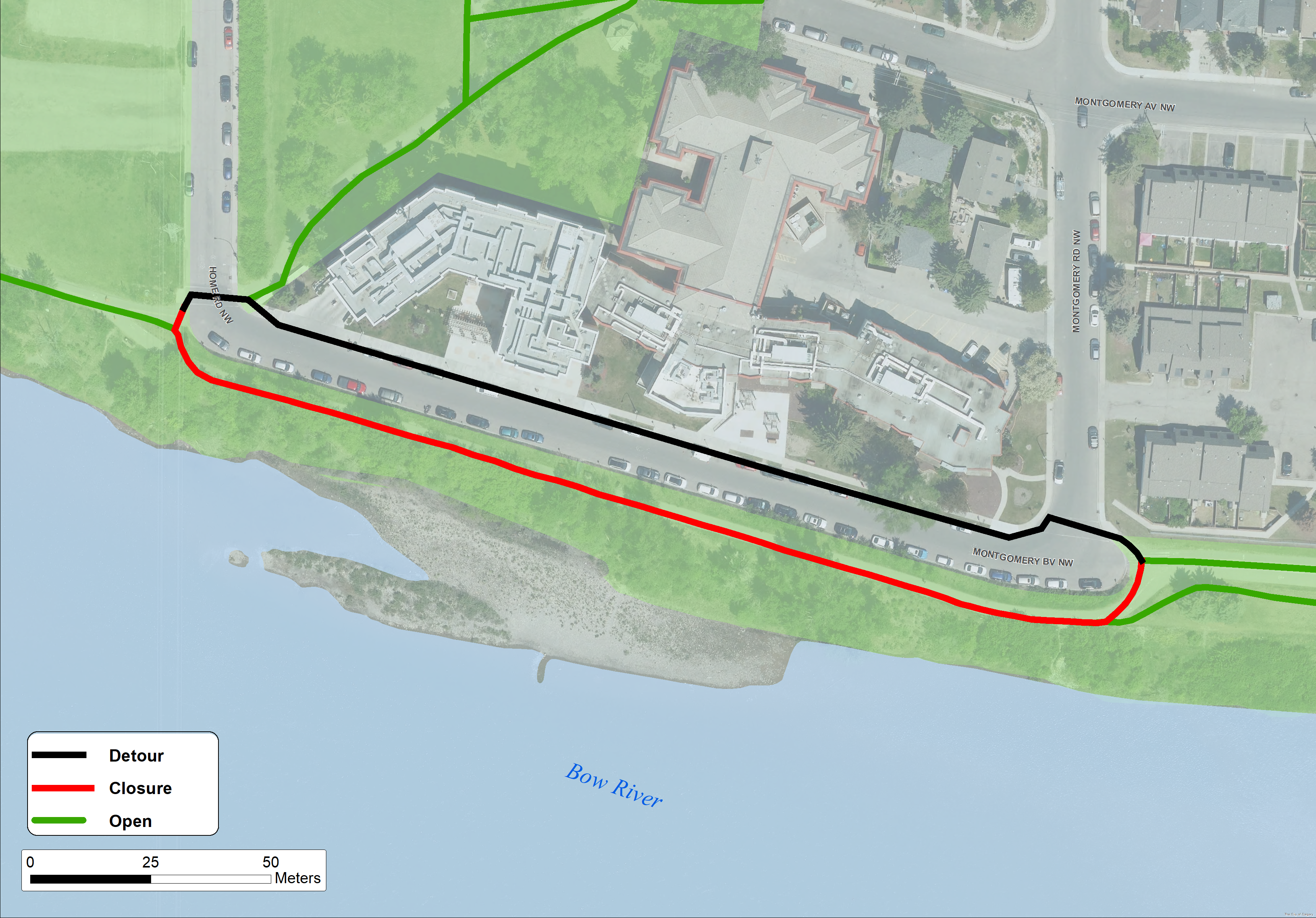 To support ongoing watermain repairs, the Bow River Pathway is closed: