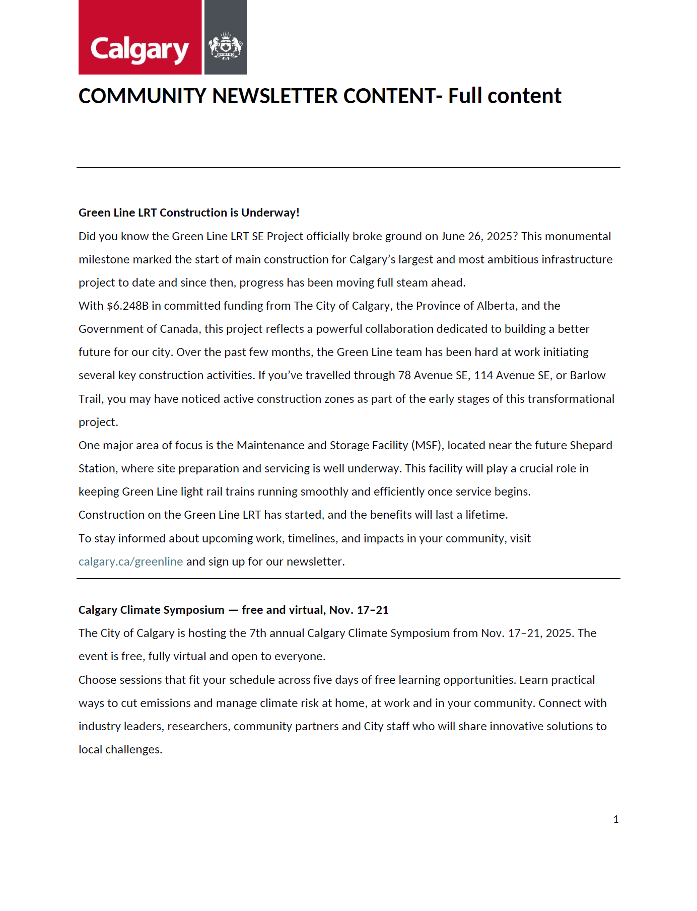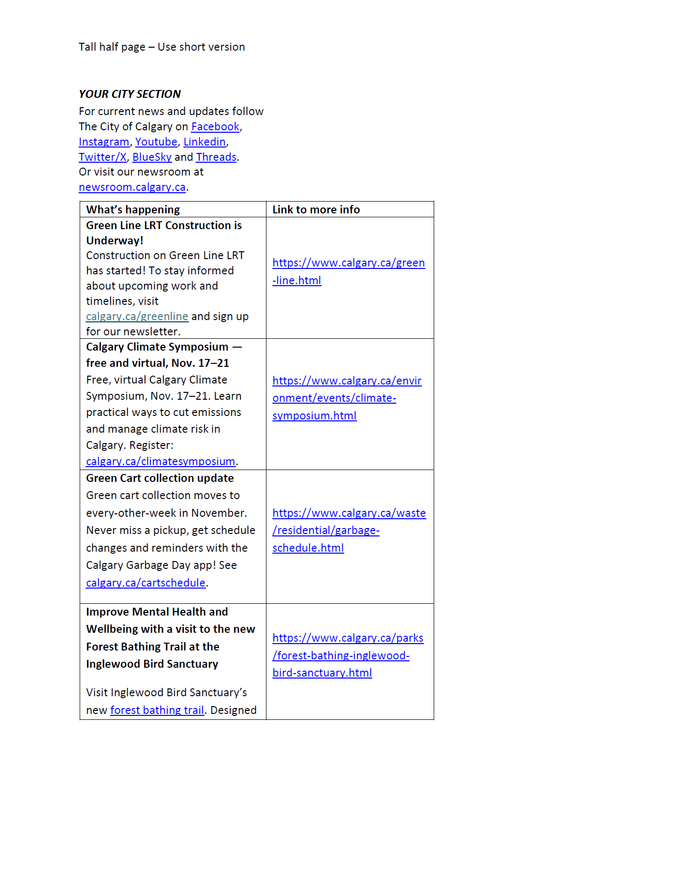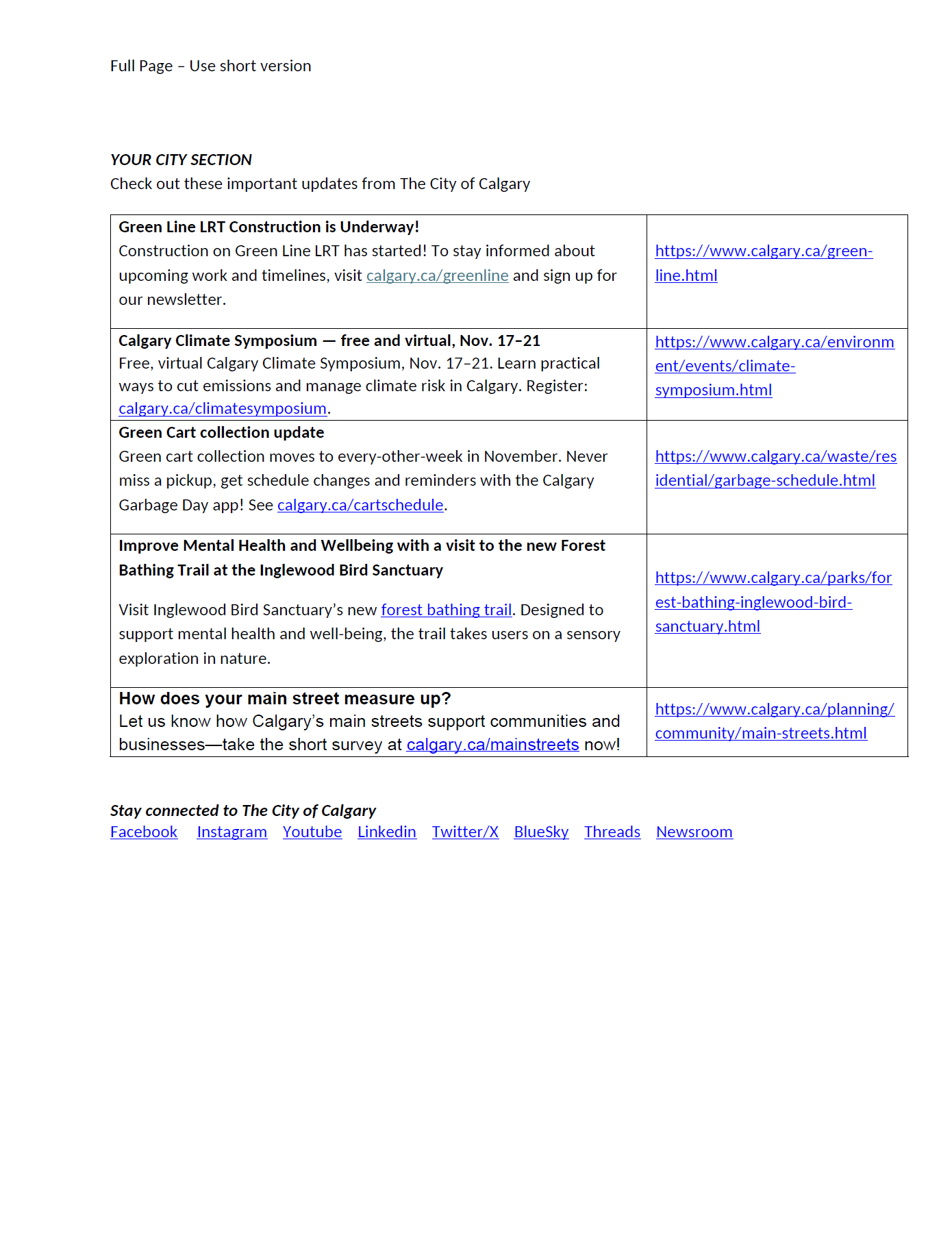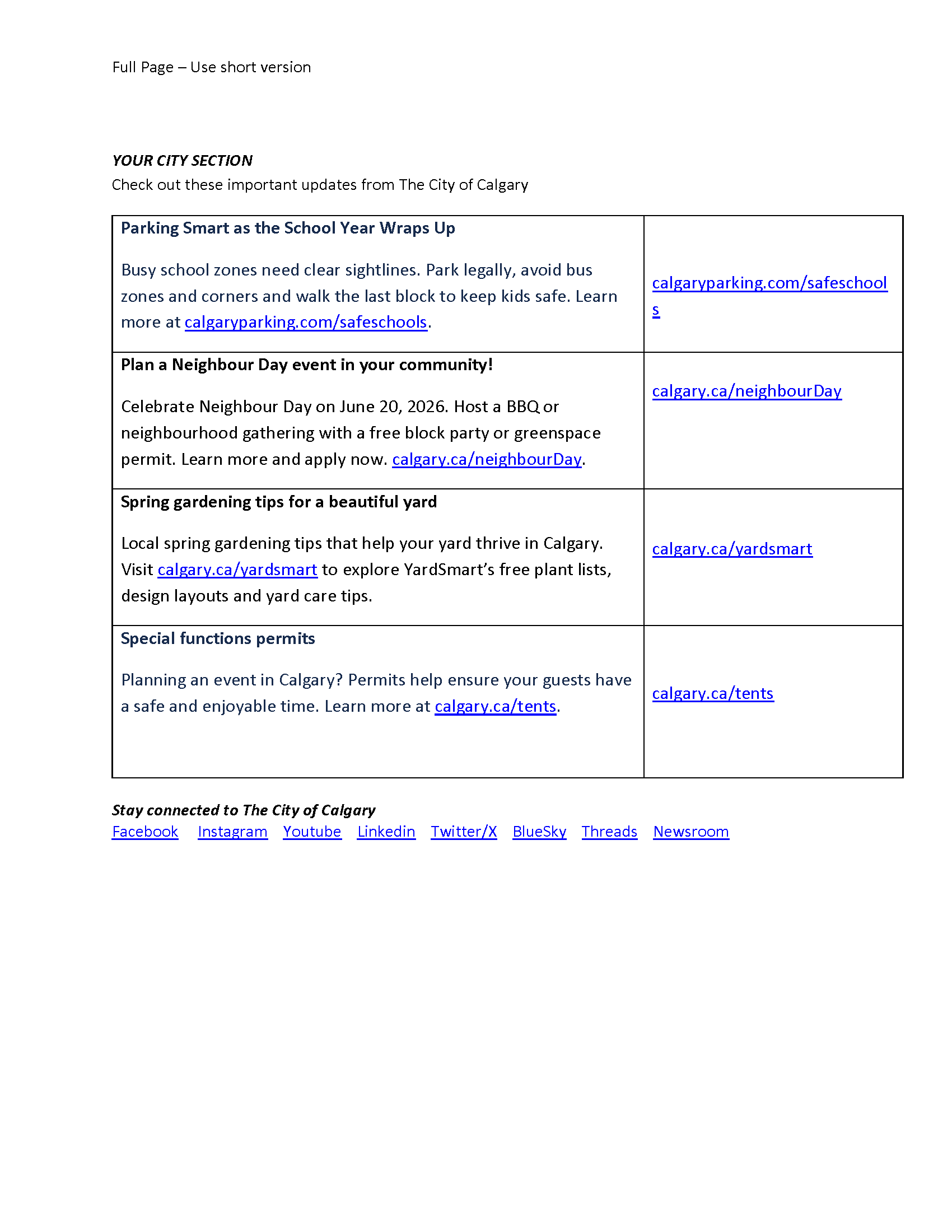 City content for community newsletters