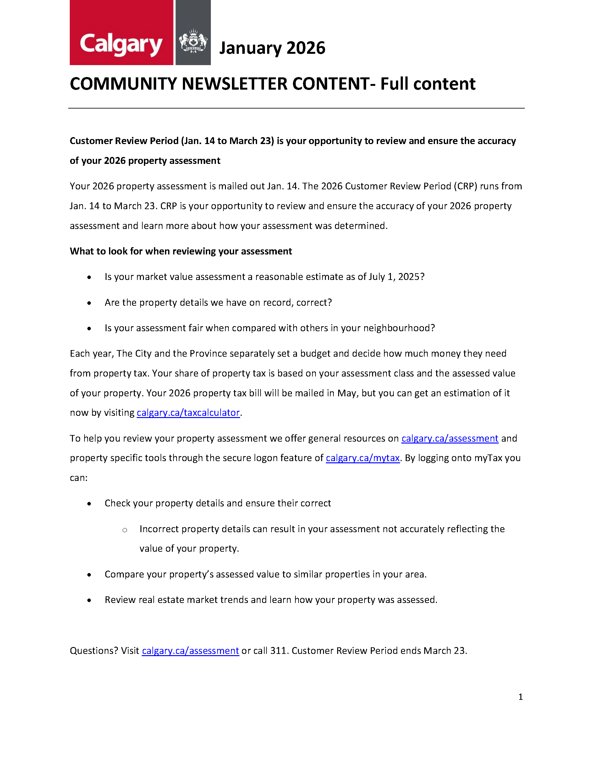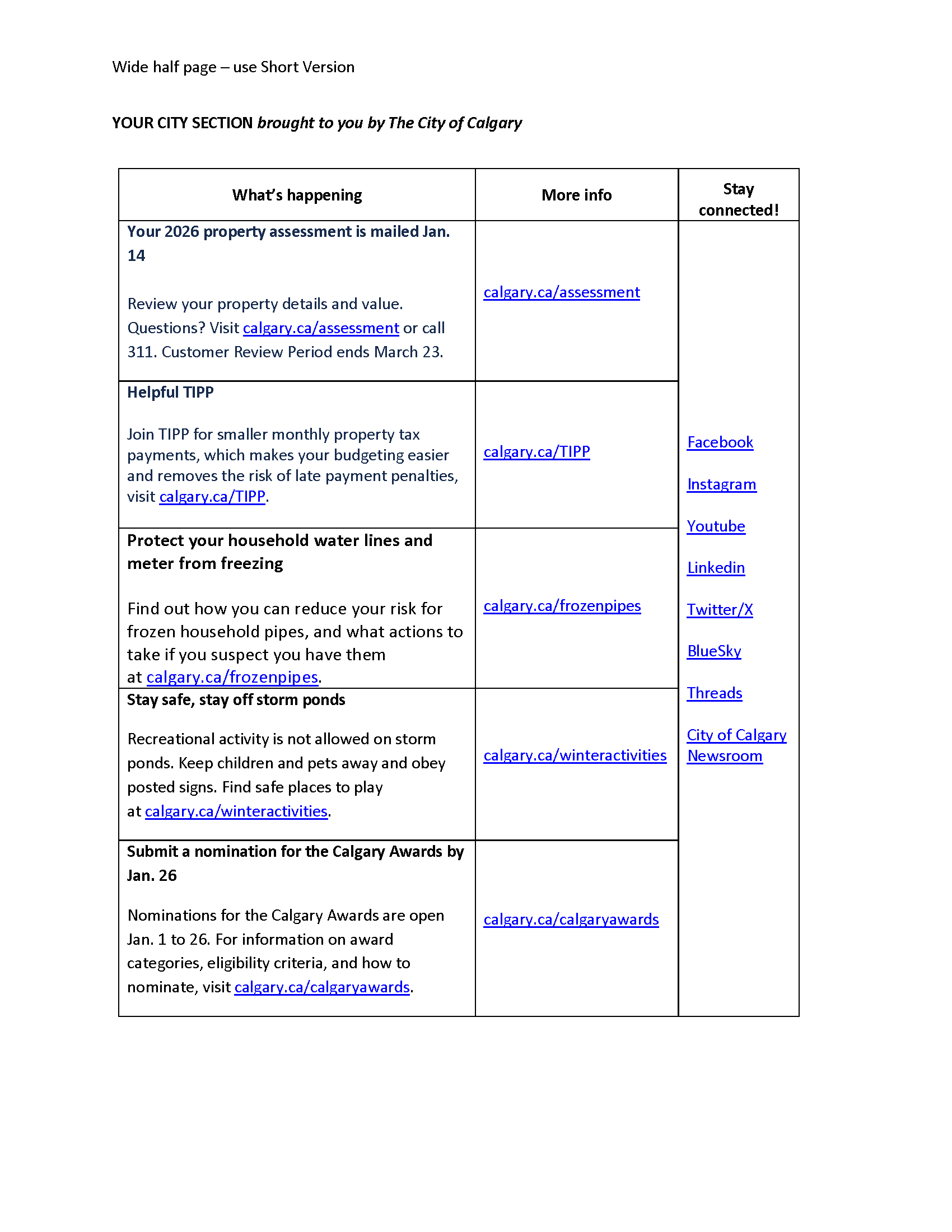 Thank you to all the Calgarians who support their community by keeping their neighbours informed! We hope you find this information valuable. Please call 311 with questions or feedback.