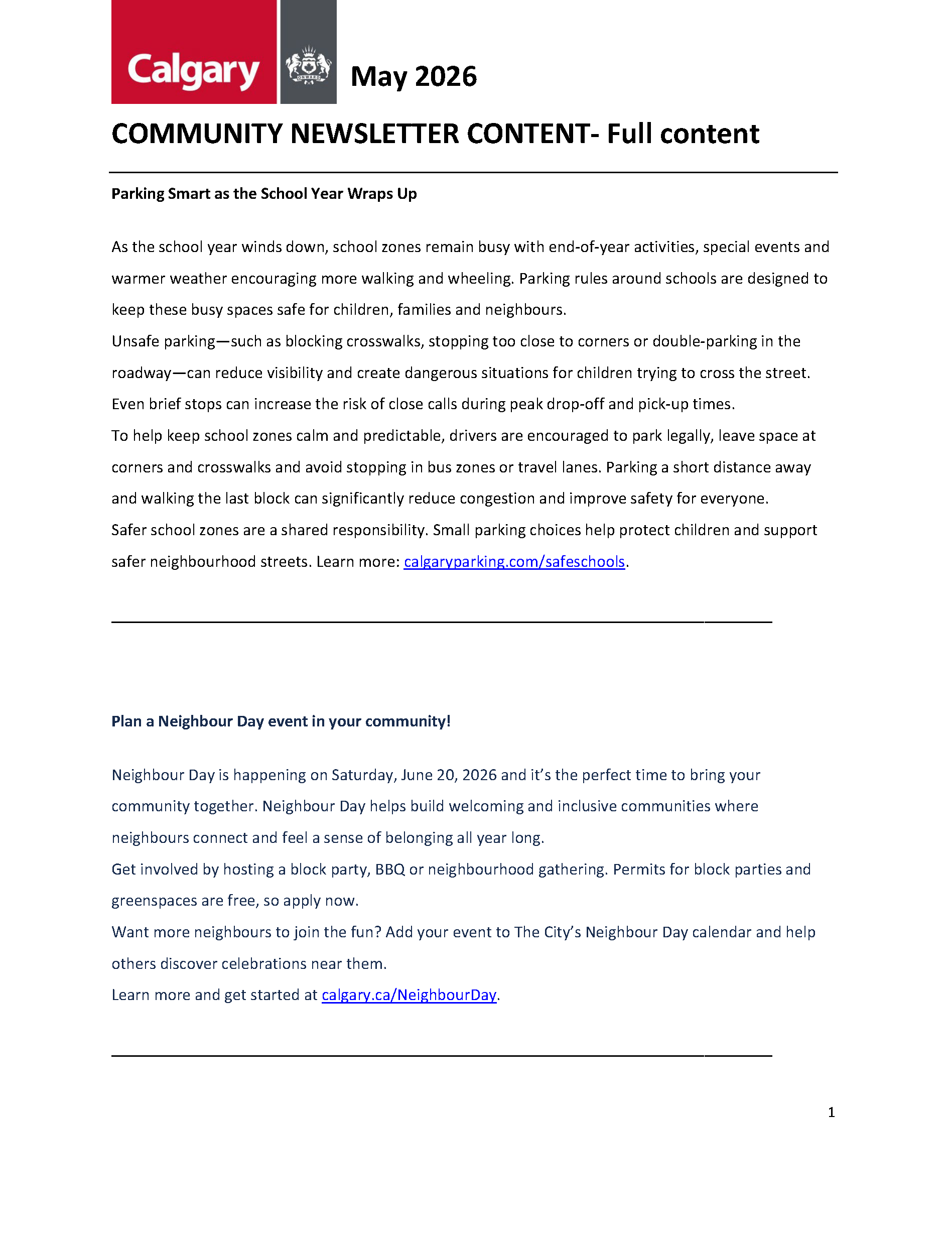 This page provides City of Calgary content for community associations and the publishing companies for their community newsletters. The newsletters themselves are not owned or published by The City of Calgary.