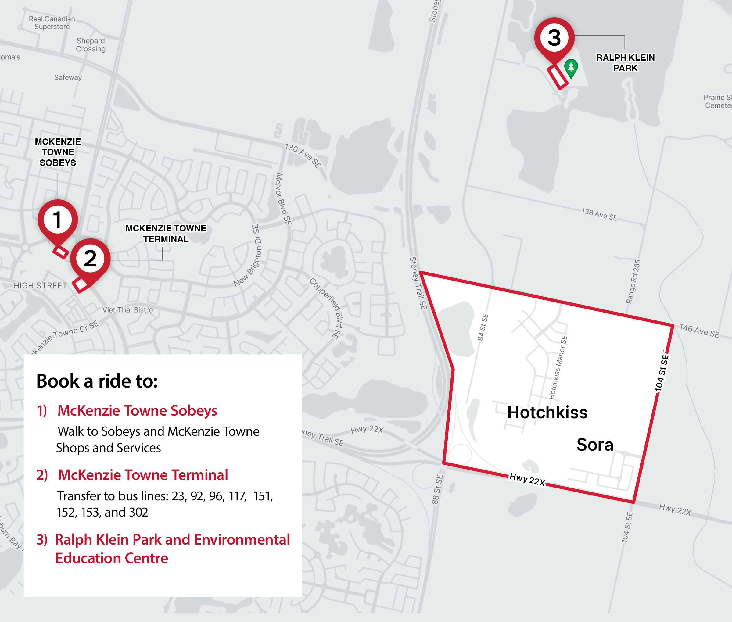 Calgary Transit On Demand is one of the ways we provide transit service to communities that don’t have the population to require traditional fixed route bus service. The service allows customers to book travel as needed, to be picked up and dropped off at several locations in the community (e.g. grocery stores, large commercial areas, transit hubs and amenities).