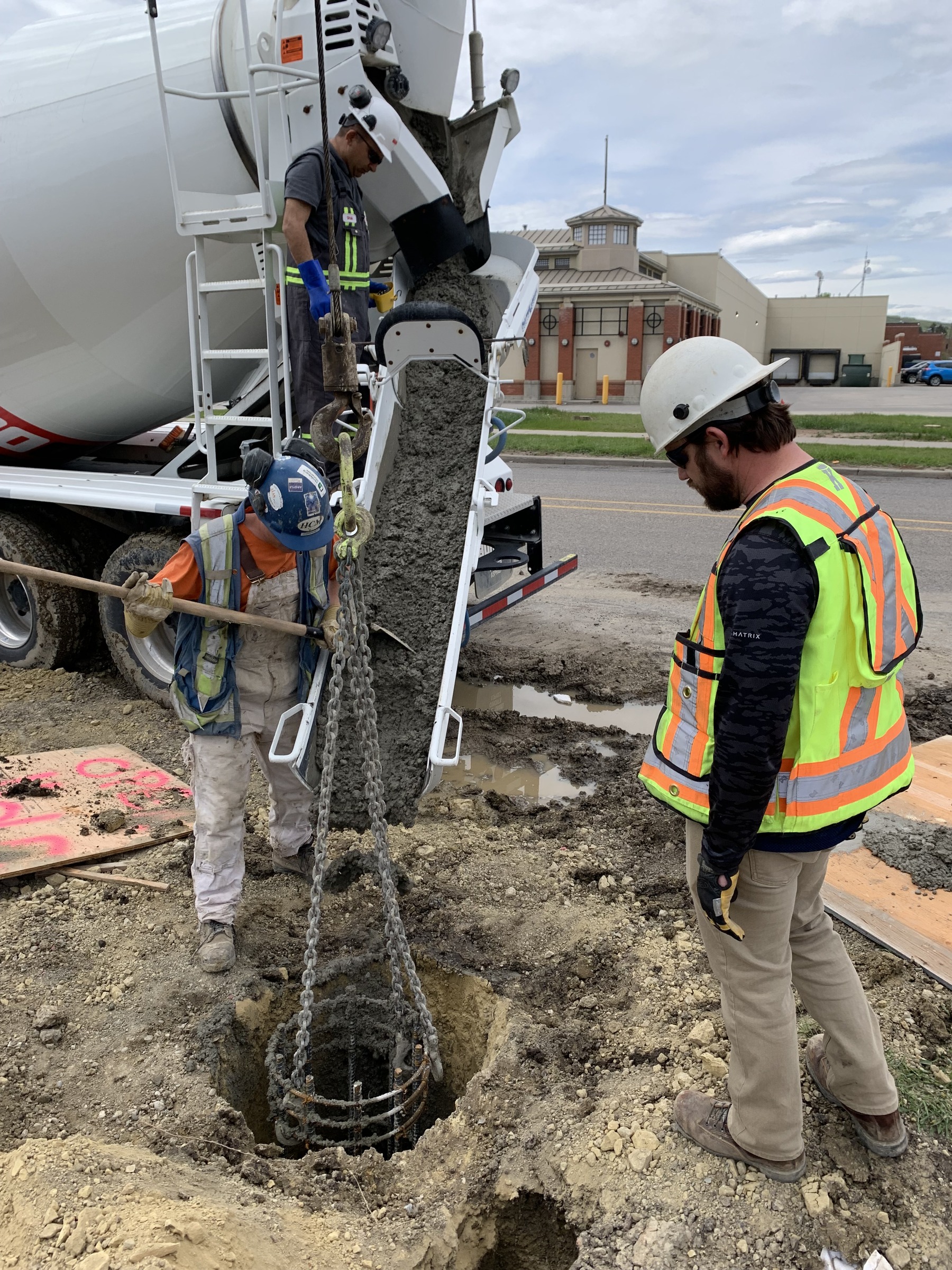 A proof roll is being completed to check subgrade and compaction of a new bus layby