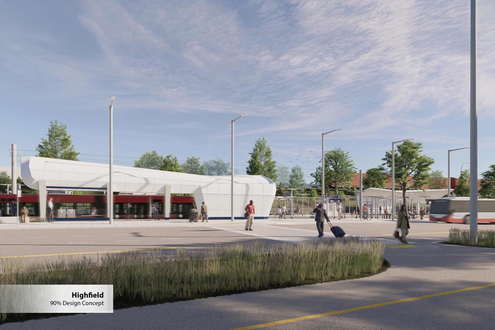 - The multi-use pathway provides seamless access from the adjacent industrial area, along Highfield Boulevard S.E. and within the station area