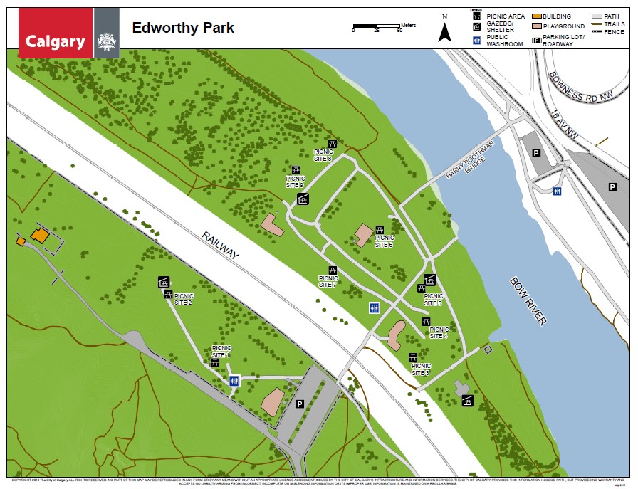 When enjoying Edworthy Park, please note that the land approximately 15 metres (50 feet) in either direction from the centre of the train tracks is privately-owned by Canadian Pacific (CP) and subject to trespassing laws. “No Trespassing” signs have been installed in Edworthy Park by CP. CP Police Service officers enforce trespassing laws around the railway as sworn officers by the superior court of Canada and virtue of the Railway Safety Act.
