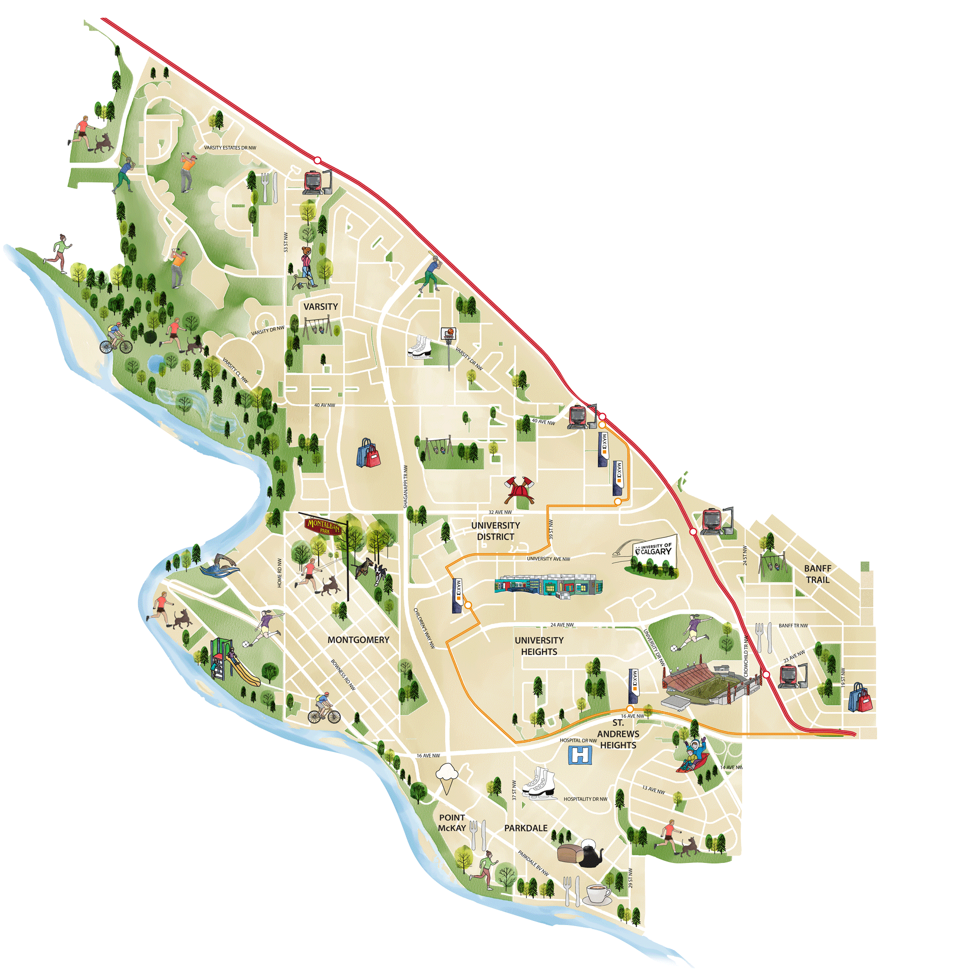 - Supporting and enabling the provision of diverse housing options including student housing, mixed-market housing, and non-market housing, especially in proximity to the major institutions of the University of Calgary, Foothills Medical Centre, and Alberta Children’s Hospital.