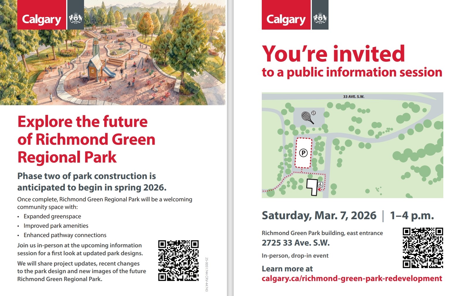 Richmond Green Regional Park is a 48.5-acre redevelopment project in southwest Calgary that will transform three distinct areas into a cohesive and vibrant regional park featuring both active and passive recreational opportunities.