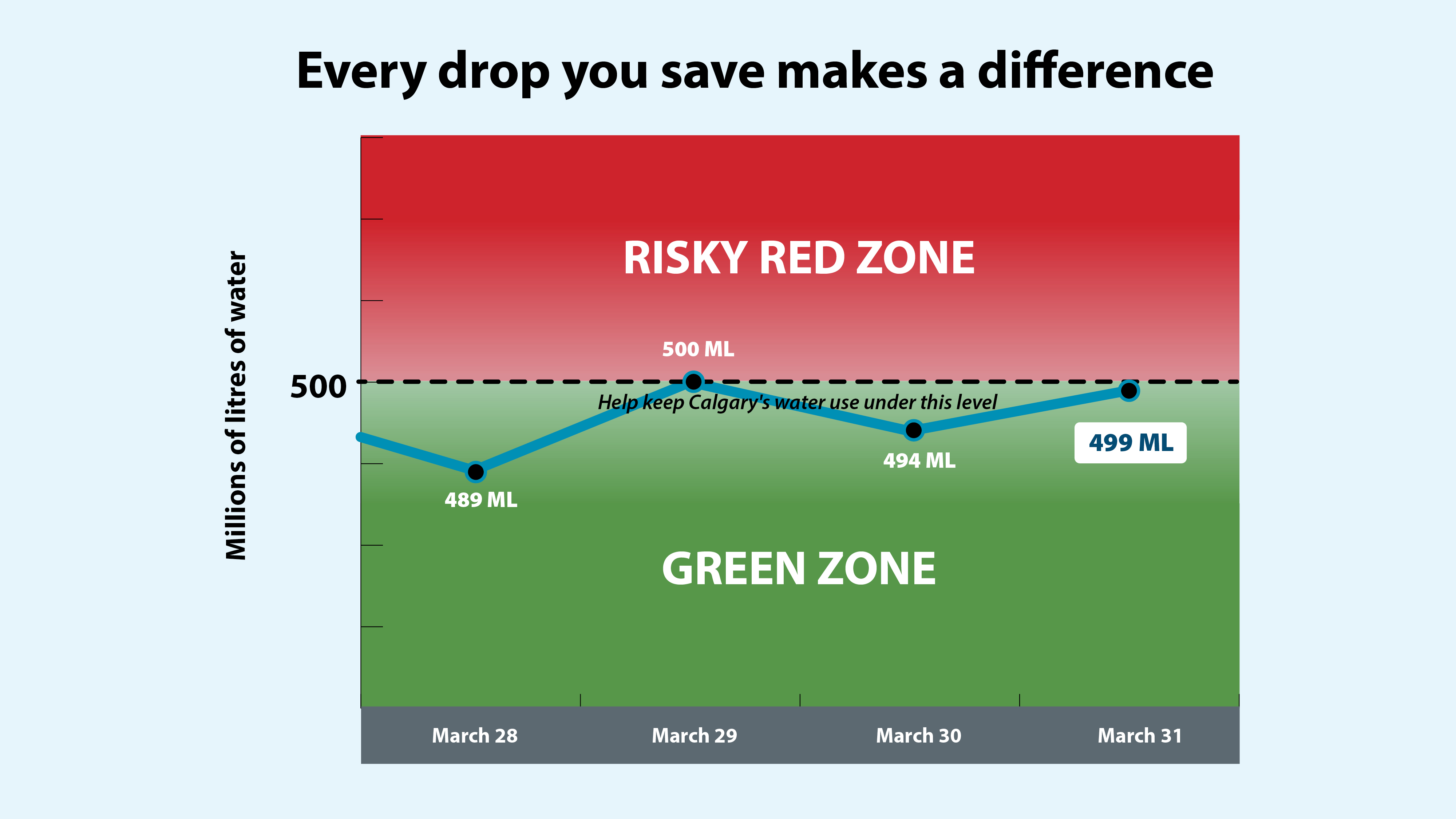 The City is not setting a specific reduction target for individual businesses. To stay below 500 million litres per day, we need all Calgarians — residents and businesses — to do their part.