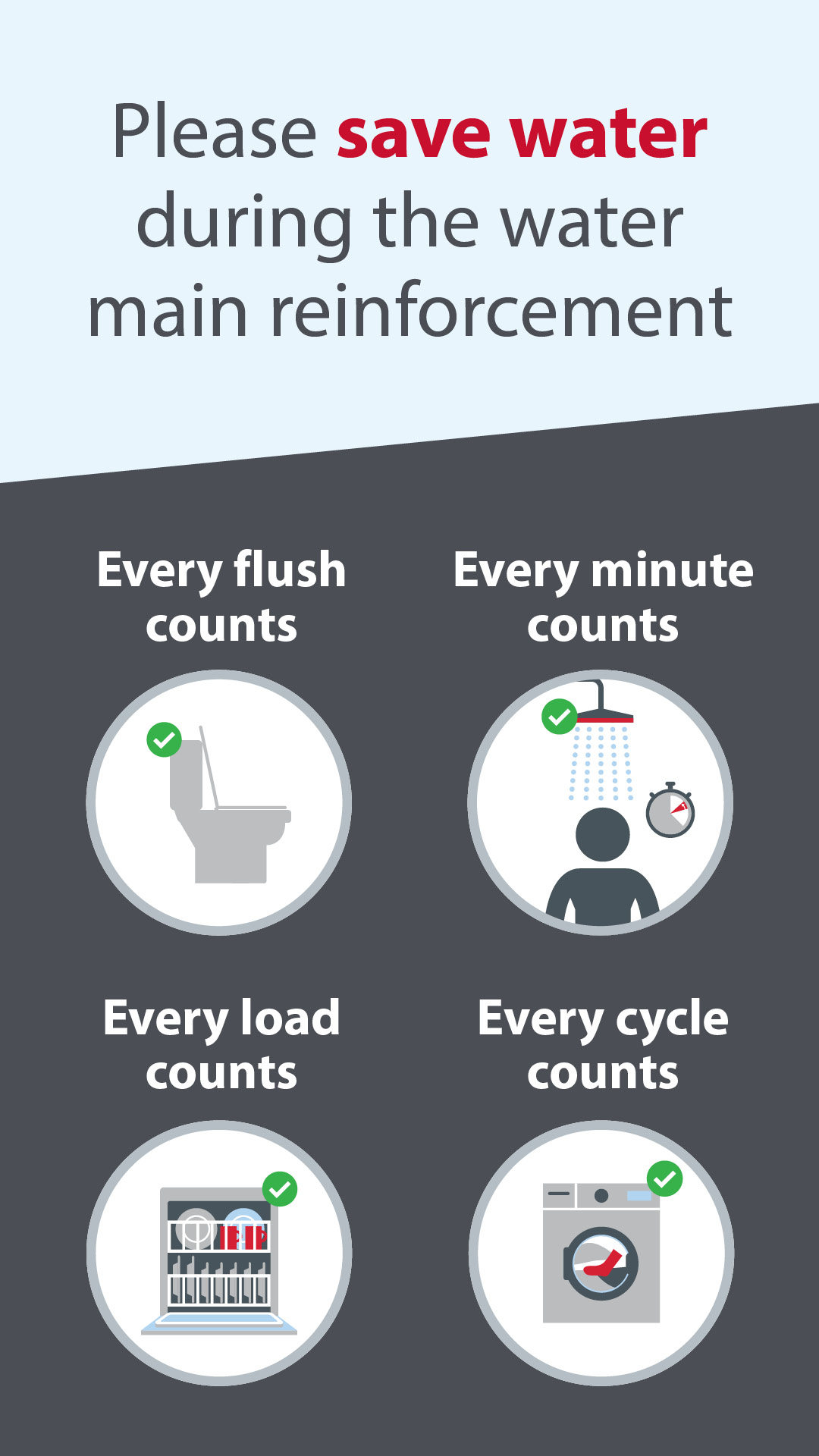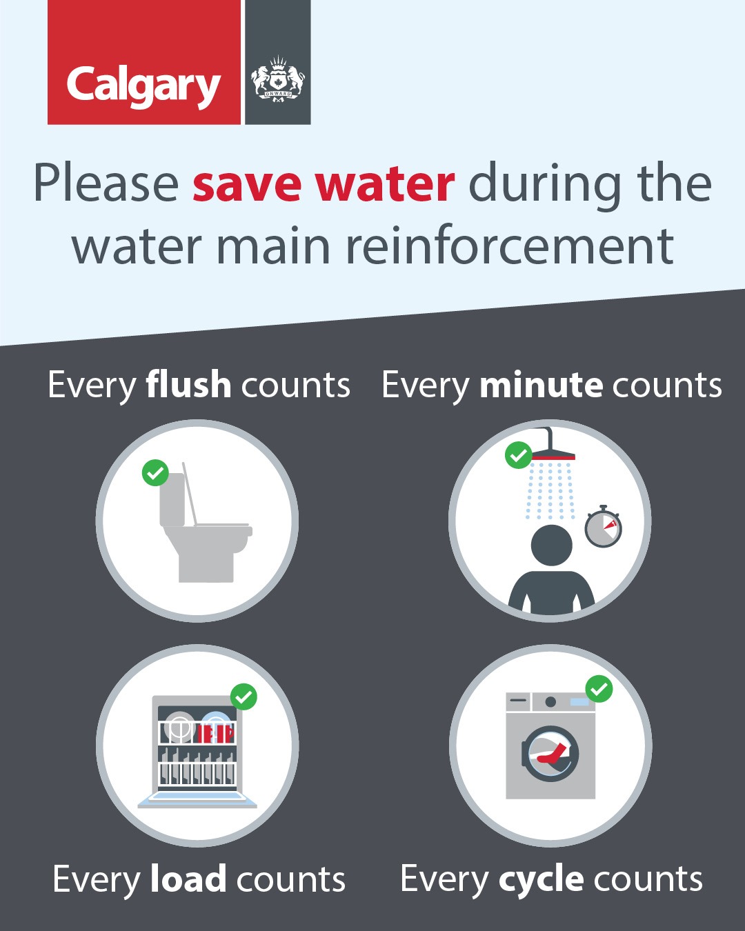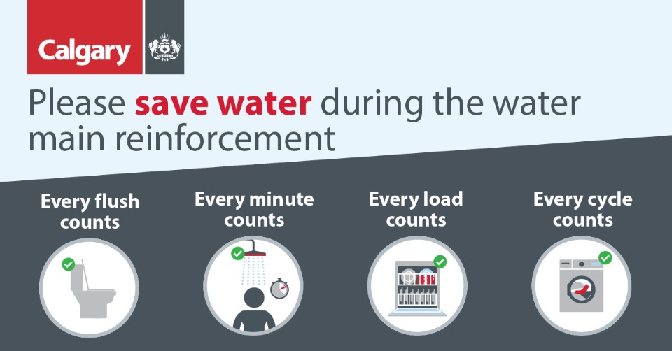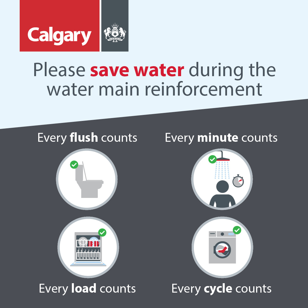 This spring, the Bearspaw South Feeder Main will be shut down for reinforcement work. During this time it will be critical for residents and businesses to use less water since the Glenmore Water Treatment Plant will supply most of the city and region and will be operating at maximum capacity.