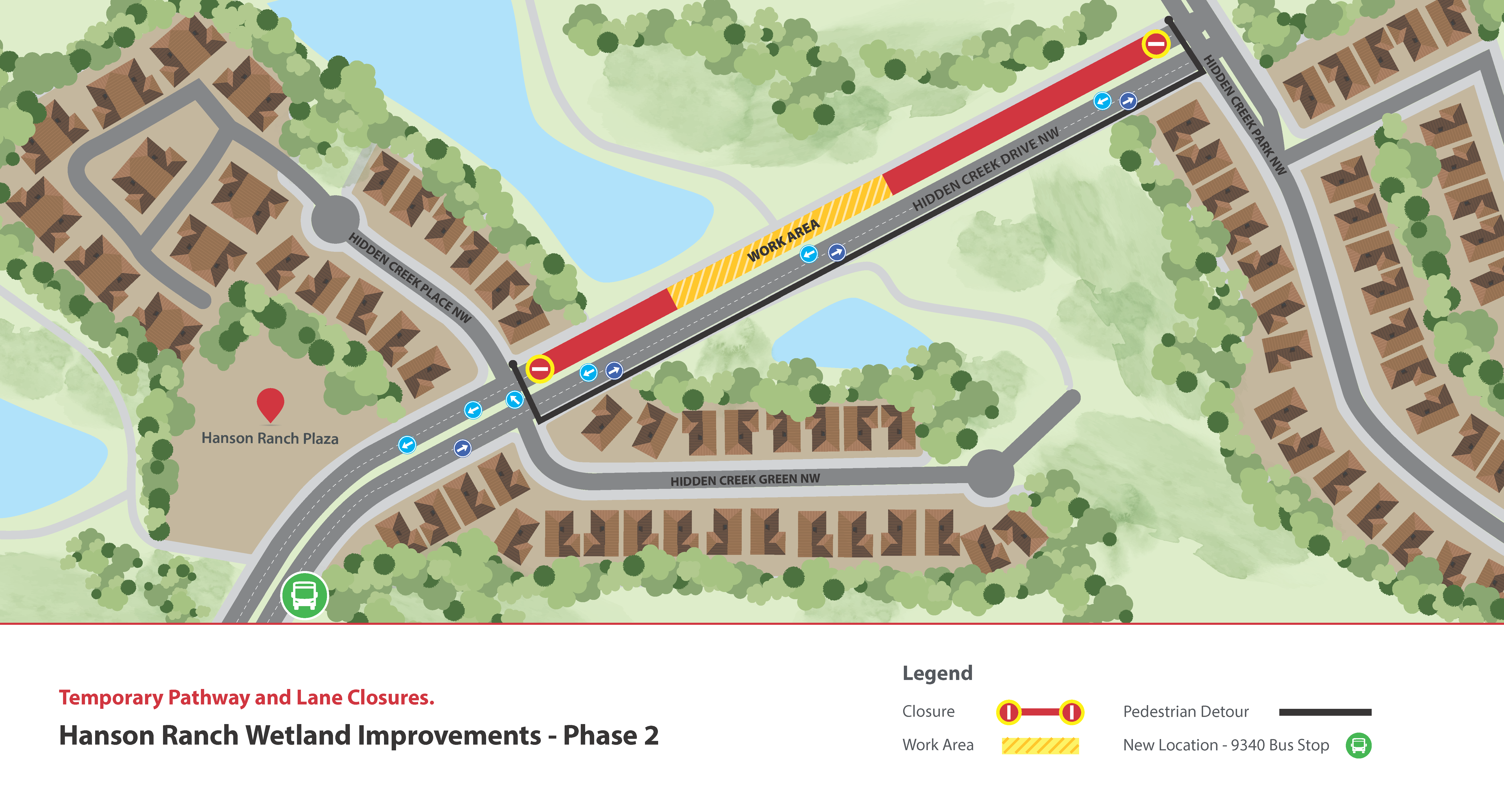 Our next step is to begin construction on Hidden Creek Drive which involves temporary lane detours, additional noise and temporary re-location of a bus stop. This work is taking place from February 6 to February 13. Please note, these dates are subject to change due to weather and other factors. Please see the maps below for additional information.
