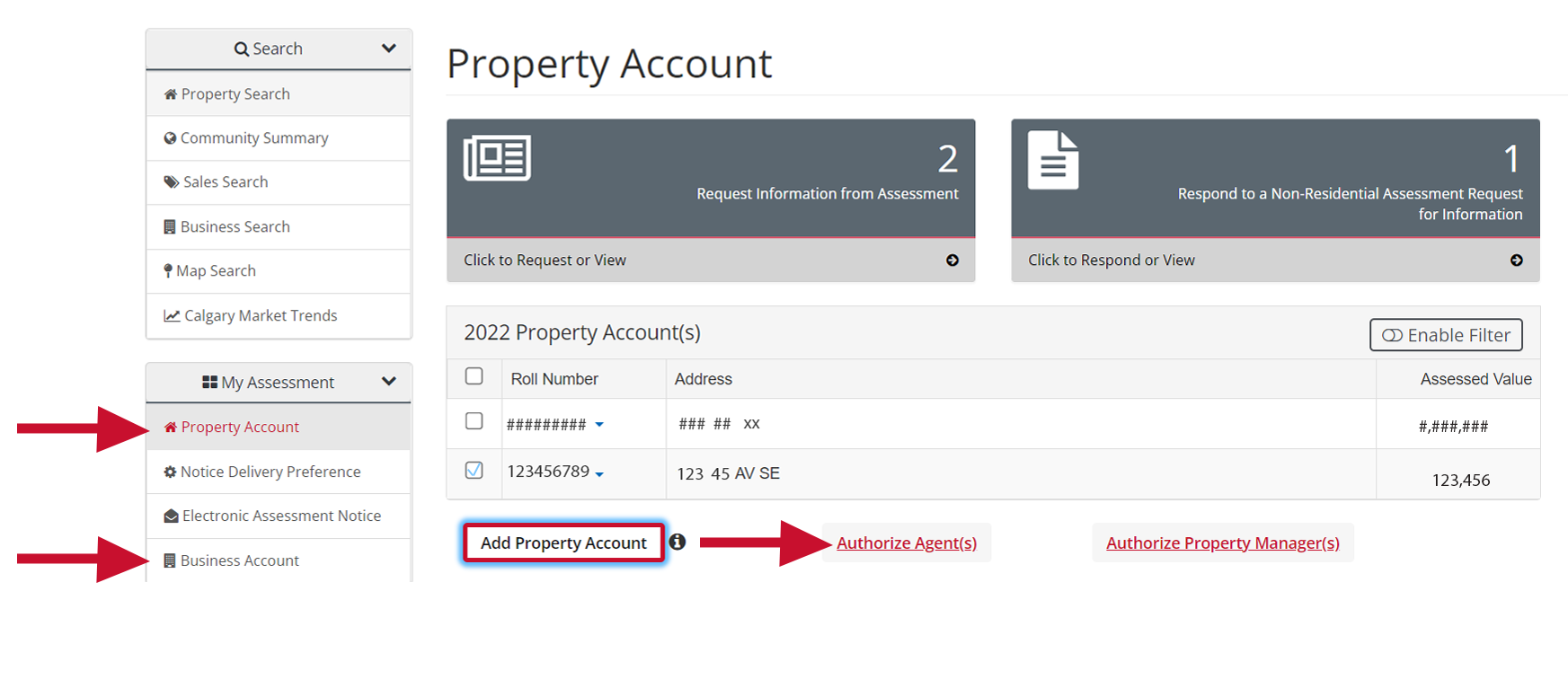 - Your current year’s assessment notice’s access code. If you have lost or can’t find it, request a new access code.
