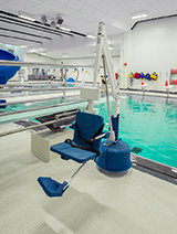 - Permanent pool lift (500 lb. capacity) for the deep water pool basin