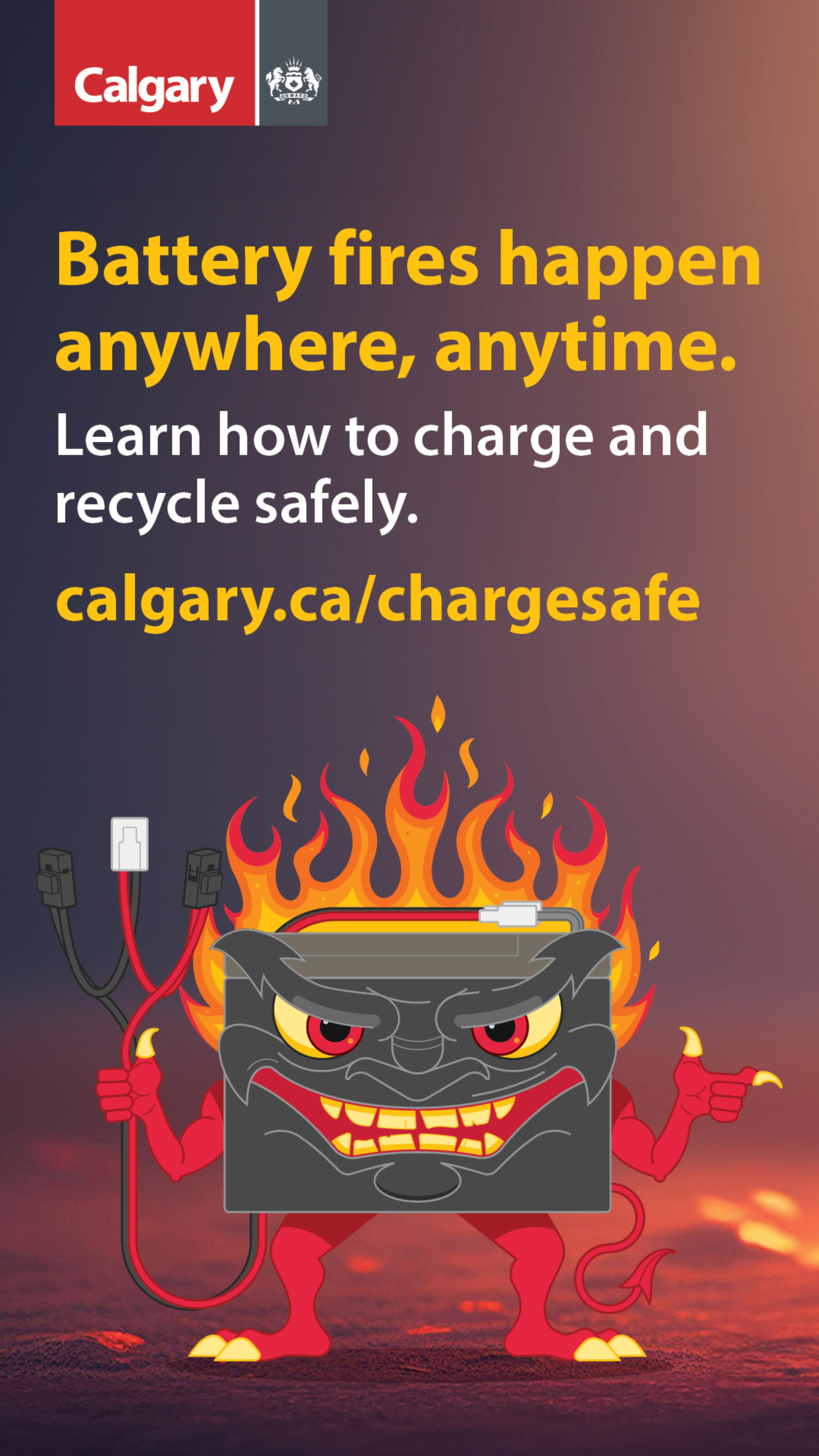 All batteries, including lithium-ion batteries, need to be separated and taken to a recycling retailer for safe handling. If they end up in any of The City of Calgary bins, the batteries can get crushed by equipment leading to fires at the recycling facility, composting facility or landfill sites.