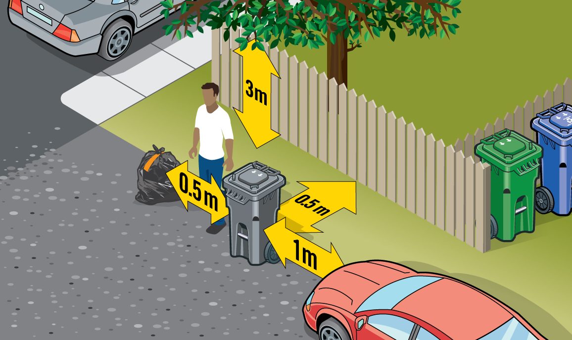 The mechanical arm requires adequate space to reach, grab and lift the bins to empty them. Placing your carts and extra bags with enough space means your driver will be able to collect them up safely and stay on schedule for you and your neighbors.